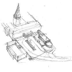 Die öffentlichen Bereiche, wie z.B. die Flure, sollten aufgrund ihrer Großzügigkeit den Charakter der Begegnung behalten - betont durch einen zentralen roten Teppich und ein umgebendes Steinfries.