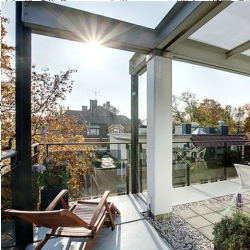 In der eleganten Möhlstrasse in München Alt-Bogenhausen wurde für das verglaste Penthouse eines Otto-Steidle-Wohnhauses eine überraschend flexible Raumkonzeption entworfen. Ausgangspunkt sind die großen Stahlträger, die die angehängten Balkone tragen und für die Architektur von 1969 charakteristisch sind.