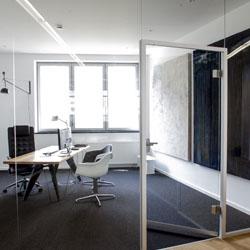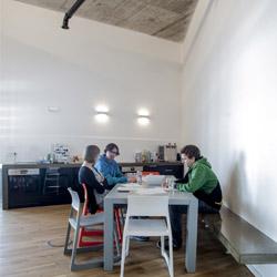 All offices are all glazed areas, with the exception of the offices of the three directors, the conference room and the kitchen. They are constructed as "open space", with the creative director occuping a semi-open office which allows him to stay in contact with the teams and exchange information at any time.